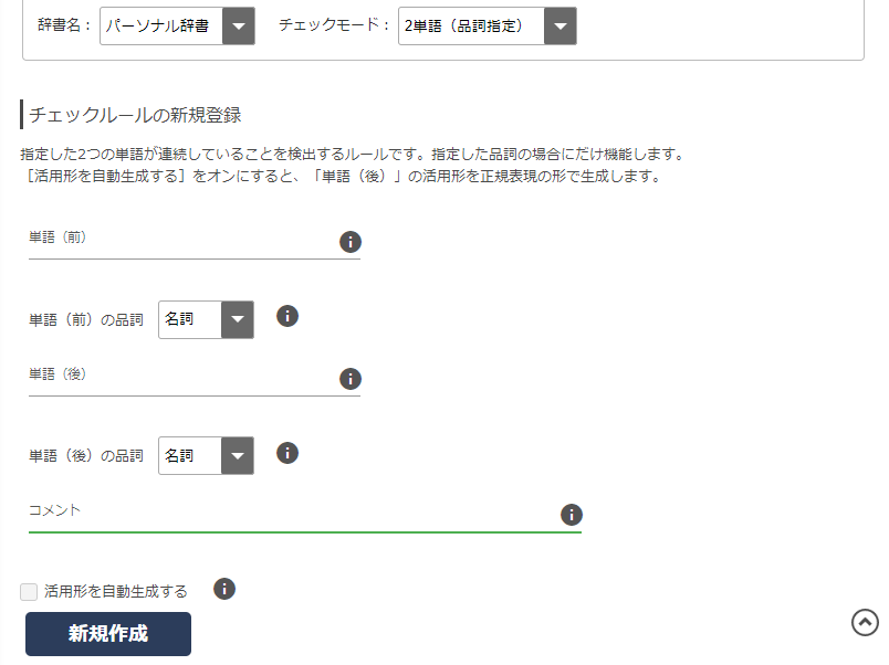 「2単語(品詞指定)」ルールは、「2単語」ルールと目的は同じで、各単語の品詞を指定できるところが異なります。