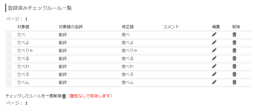 単語ルールは簡単です。単語として認識された「すでに」を「対象語」に入れ、修正語とコメントに任意の文字列を入力します。