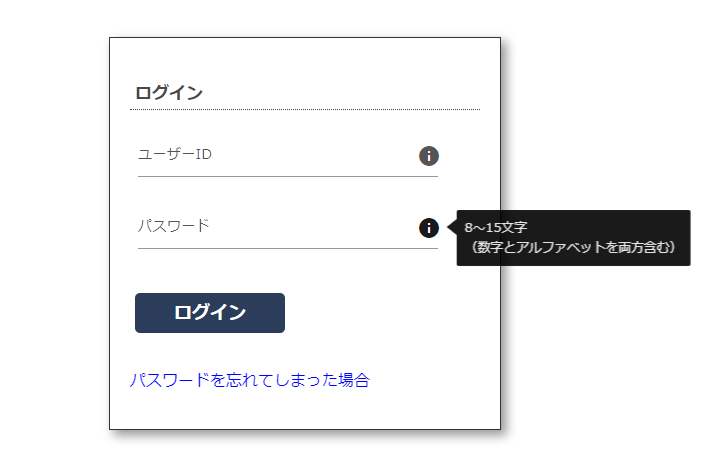 ログイン画面でユーザー名(正確には「ユーザーID」)とパスワードを入力してください。