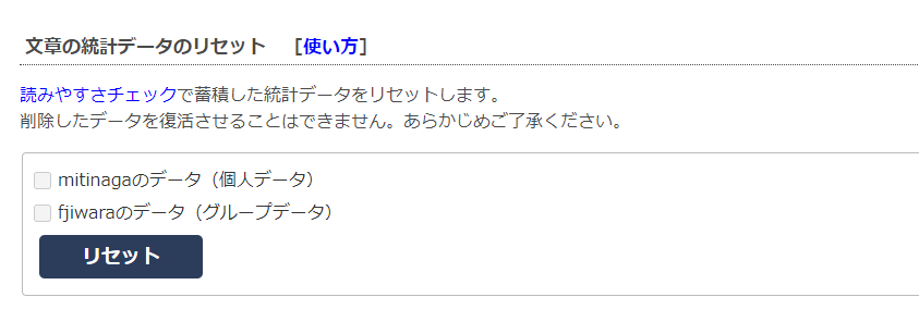 統計データをリセットする場合は、画面2にある「>統計データのリセットはこちら」をクリックします。